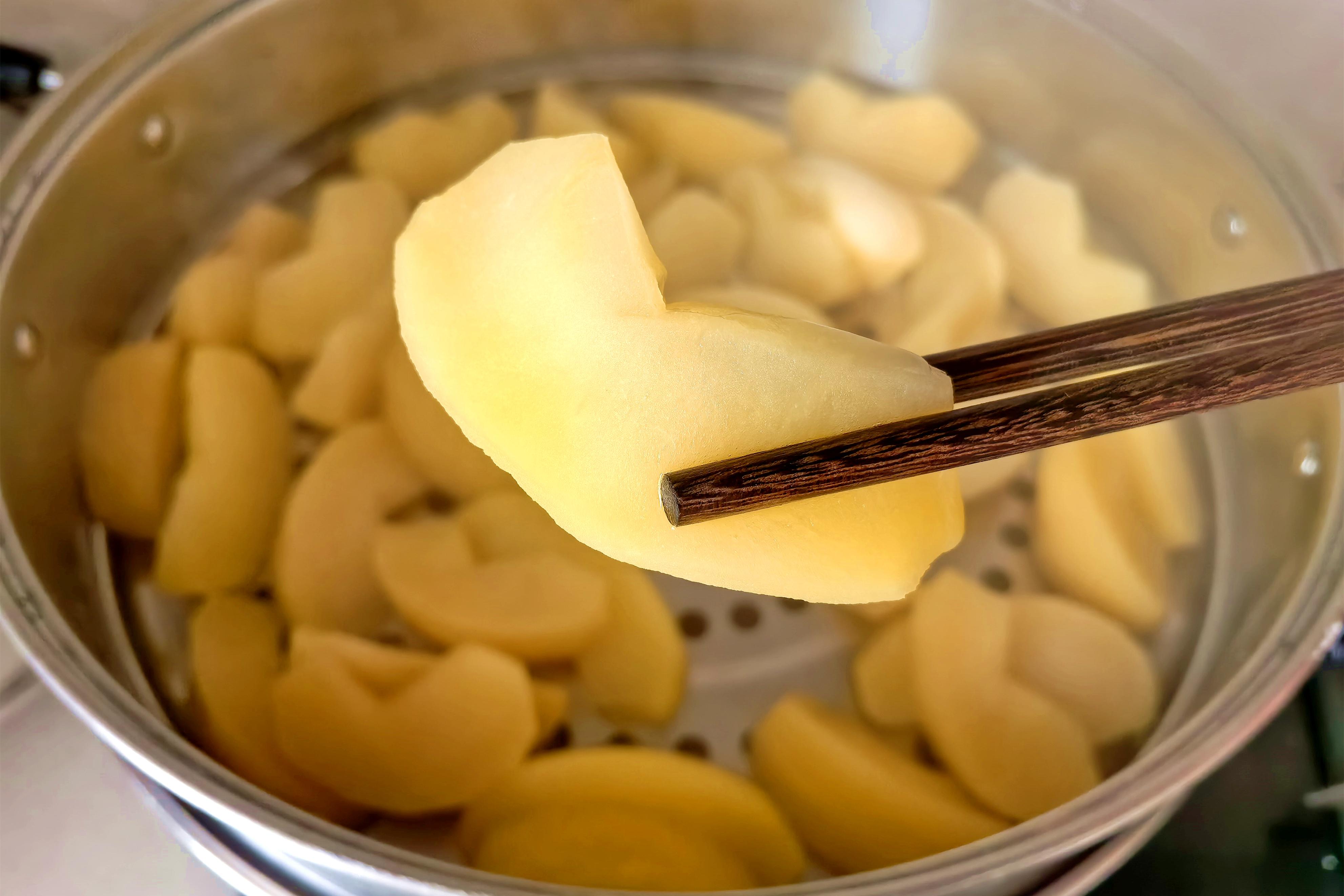 终末一次蒸10分钟即可。苹果心情会转为深琥珀色,果香浓郁扑鼻。终末绝对晒干或用烤箱调100℃烤干,持起来外干内糯,不粘手即可。