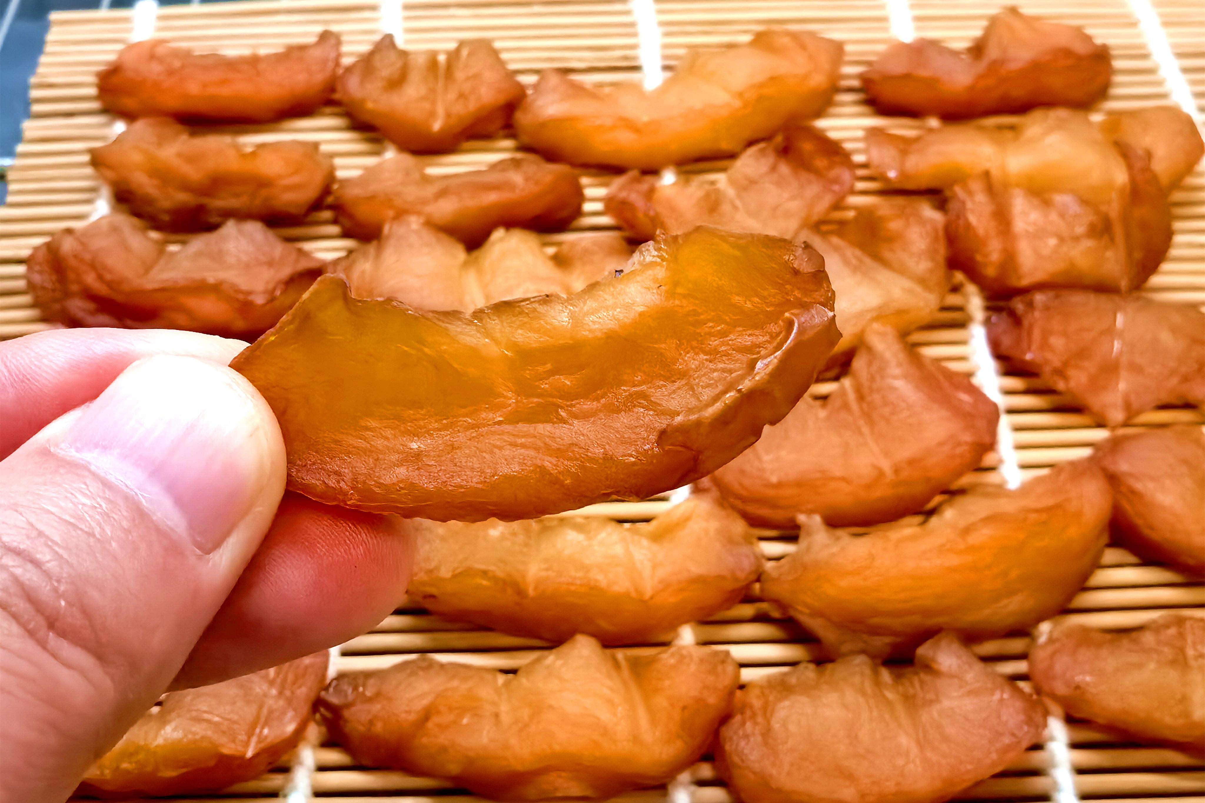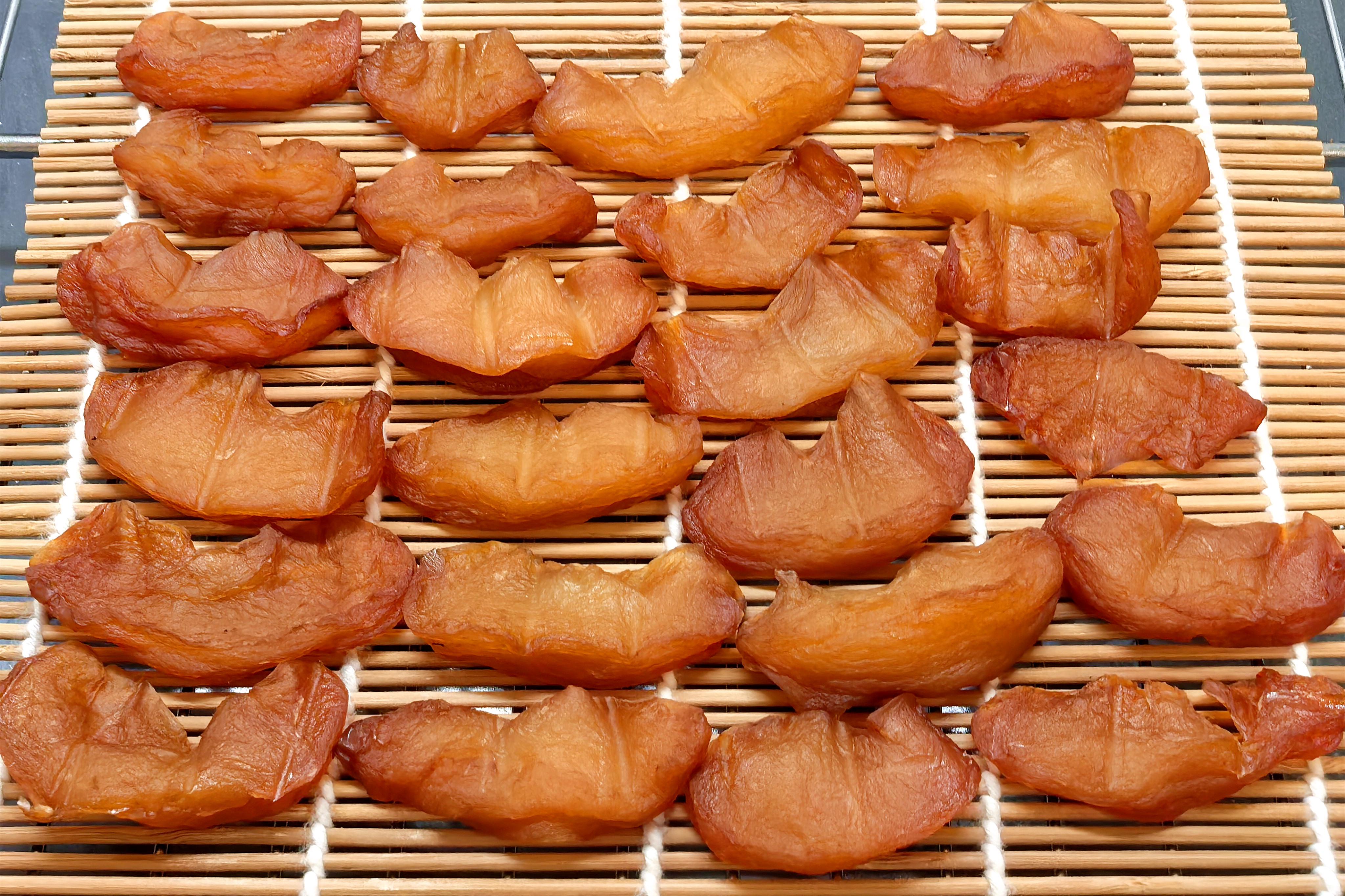 1. 苹果干曝晒进度以柔韧不湿为宜,太干硬口感差,太湿不易保存。